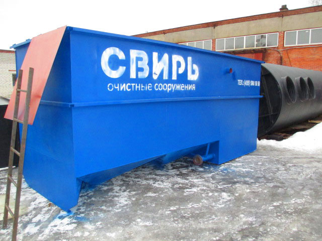 Установка «СВИРЬ-1,5УН» с производительностью 1,5 л/сек. предназначена для очистки поверхностных сточных вод (дождевых и талых) на территориях автозаправочных станций, автостоянок, складов горюче-смазочных материалов, нефтебаз, промышленных зон и жилых районов с примерной площадью водосбора до 0,125 га.